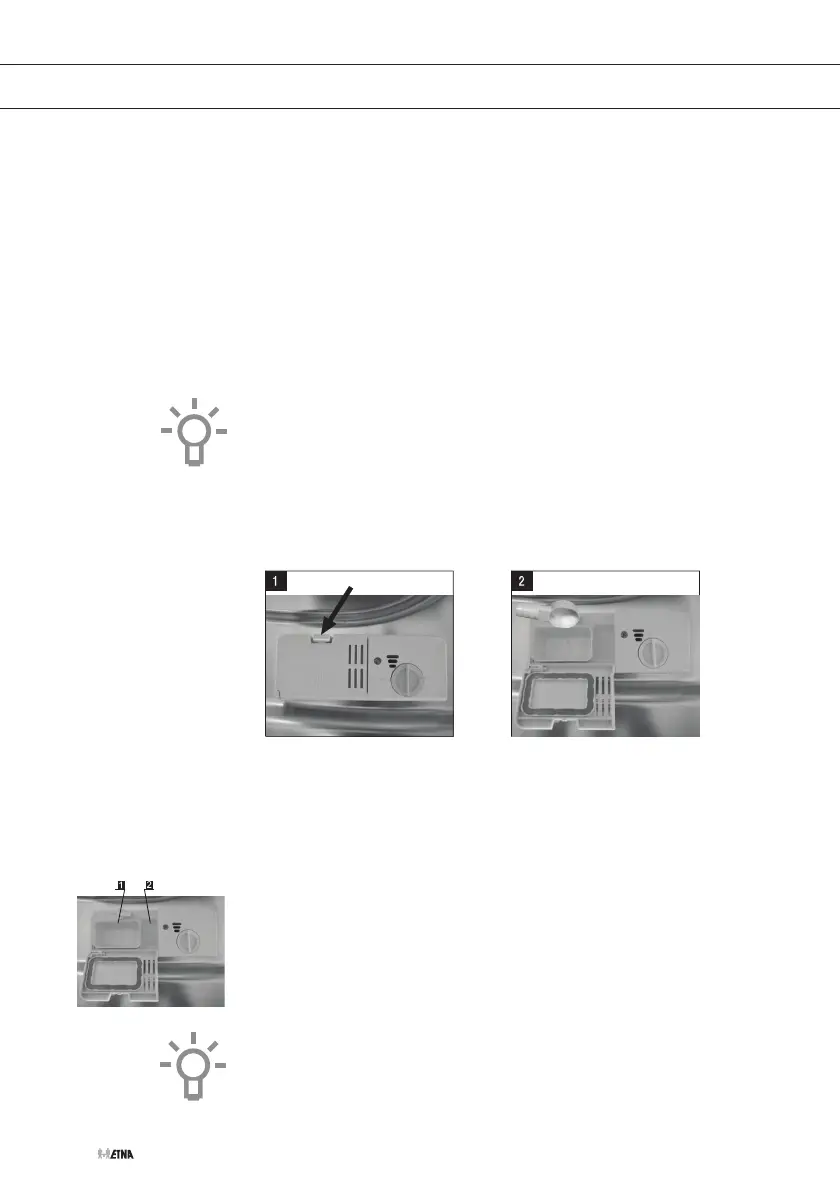 • Fach für Vorspülmittel (2), enthält etwa 5 Gramm Spülmittel.