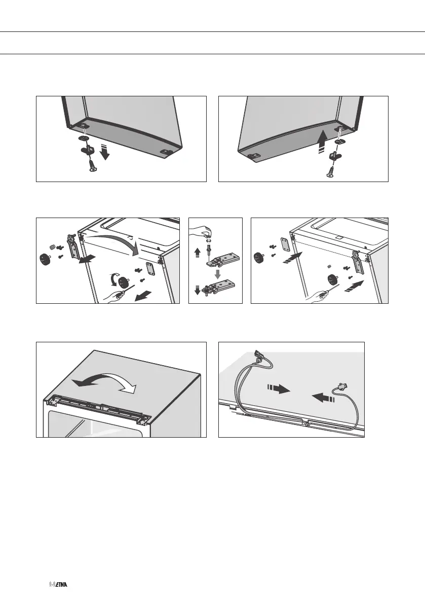 7. Draai de stelvoeten los en het onderste scharnier en bevestig deze aan de andere kant.