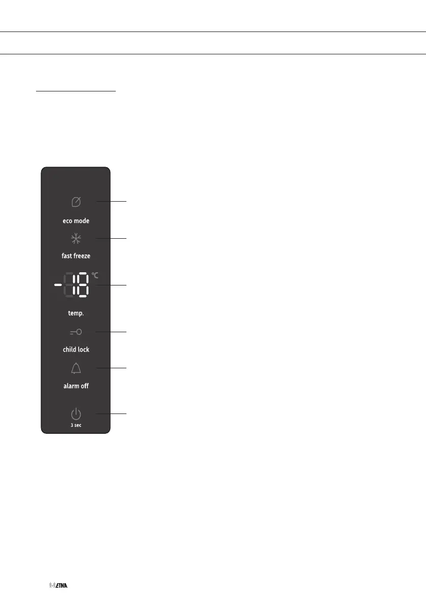 Op de deur van de vriezer bevindt zich het bedieningspaneel. Wanneer het toestel voor de eerste