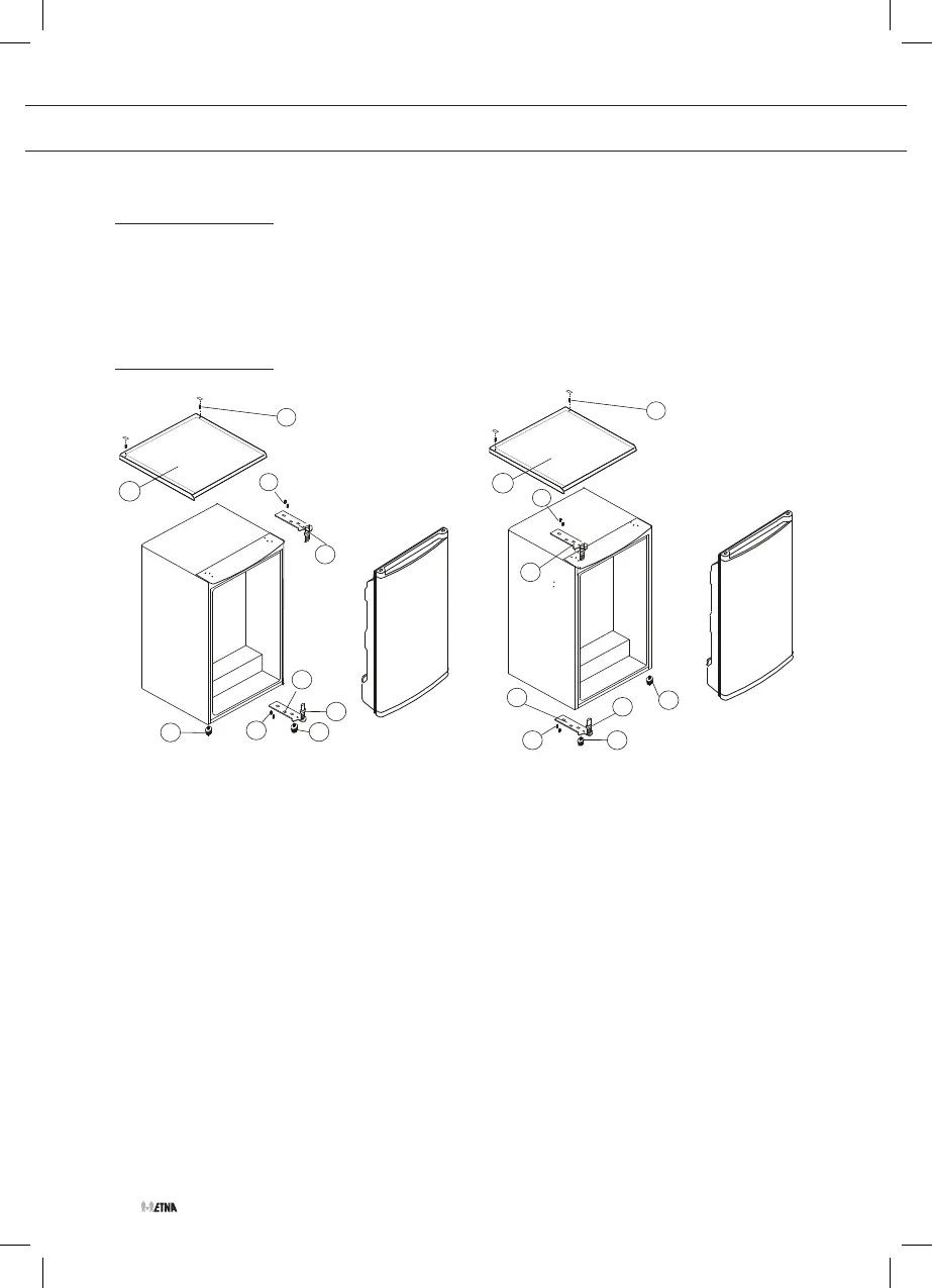 worden verwijderd en moet de richting van het scharnier (2) worden omgekeerd. Monteer het