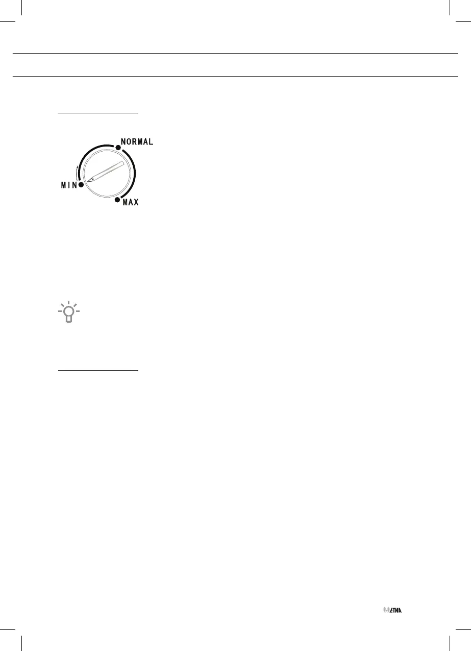 • Stel een lagere temperatuur in door de regelknop naar stand MAX te draaien.