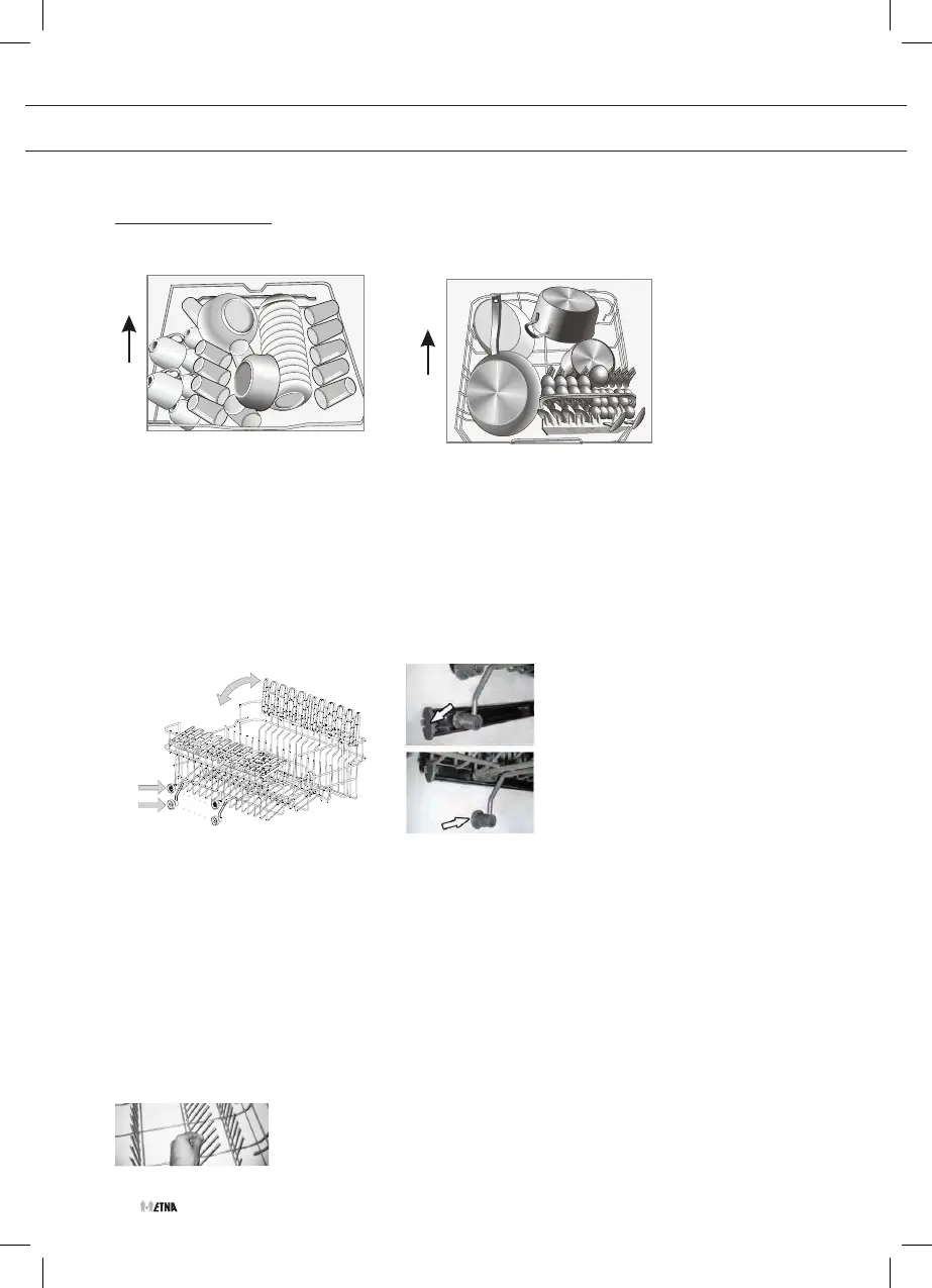 • Potten, serveerschalen etc. moeten altijd ondersteboven in de korf geplaatst worden.