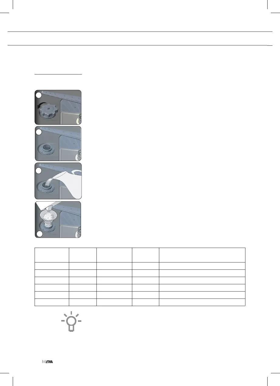 den Salzbehälter auf, wenn das Warnlämpchen des Wasserenthärters (2)