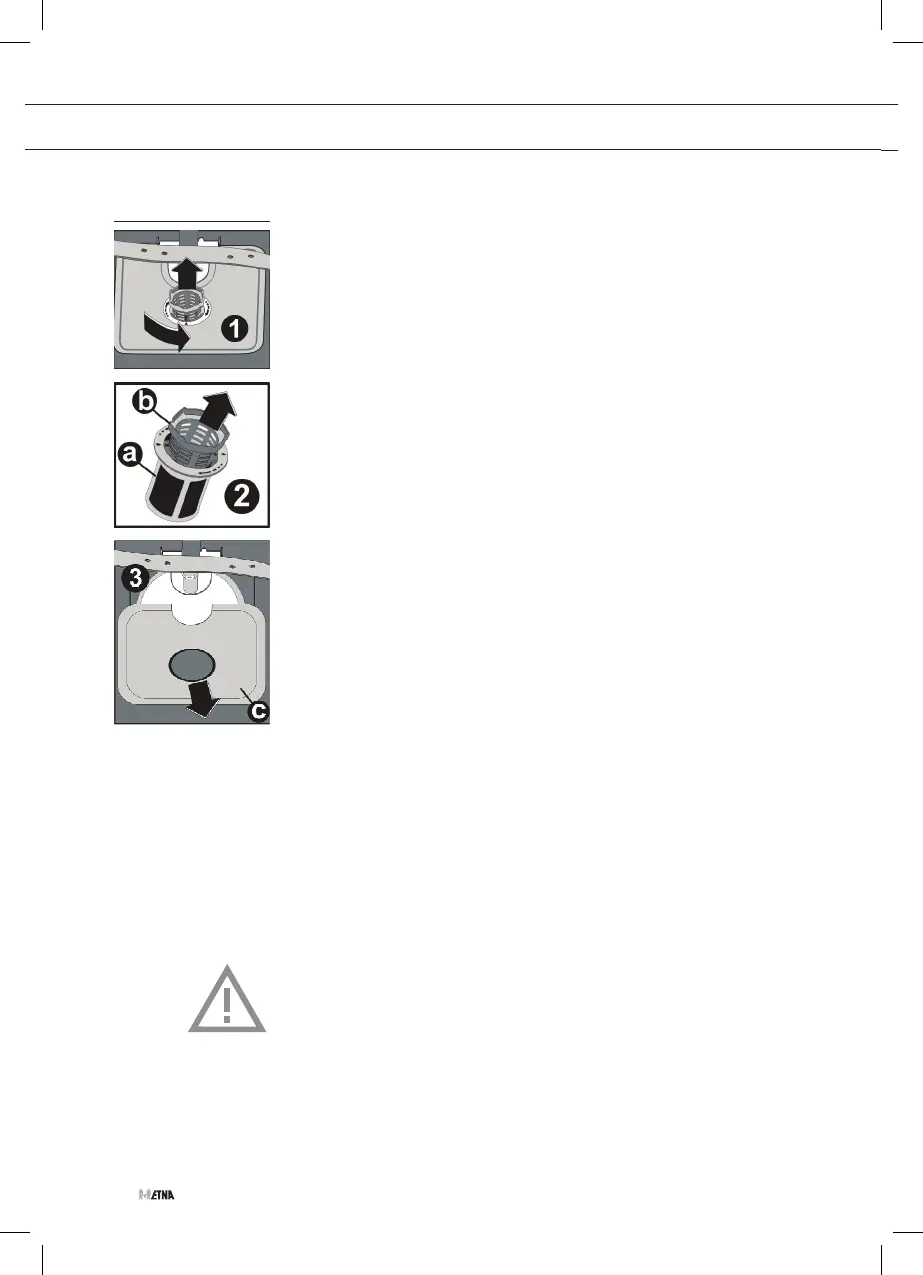 c. Großer Filter: Essensreste und Schmutz, die in diesen Filter gelangen,