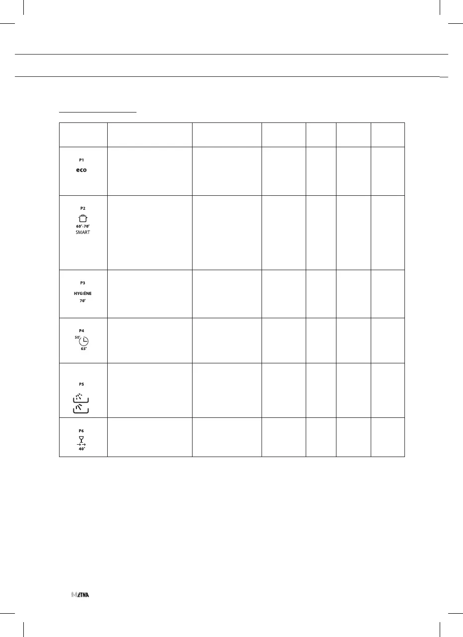 ETNA VW339M - Programmwahltabelle