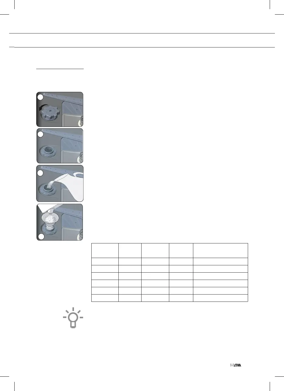 den Salzbehälter auf, wenn das Warnlämpchen des Wasserenthärters (2)