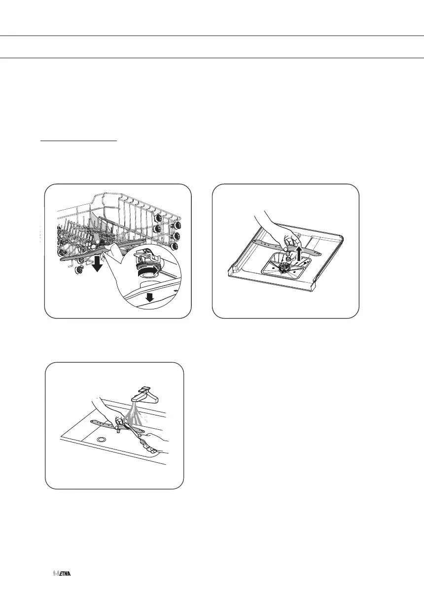2. Um den unteren Sprüharm zu lösen, Arm nach oben ziehen.