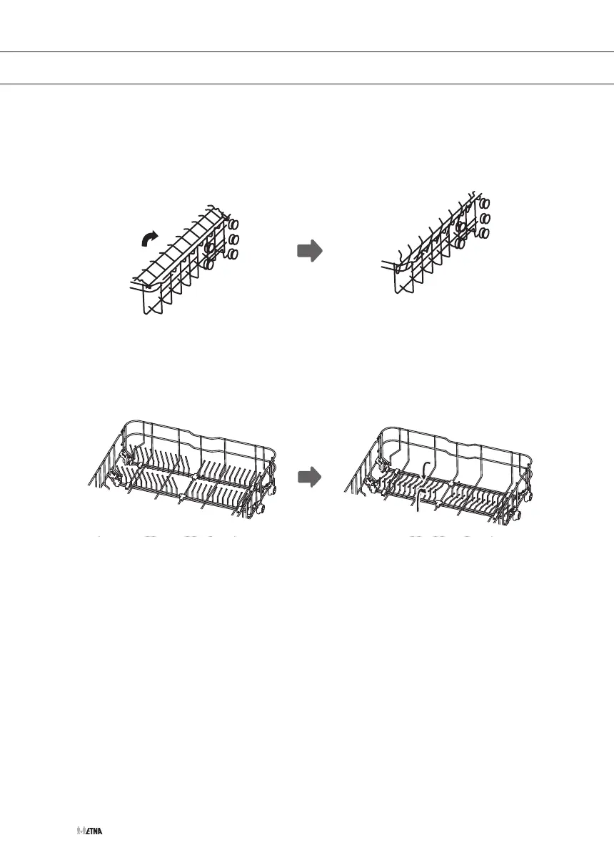Om ruimte te maken voor grotere voorwerpen in de korf, kunt u het kopjesrek omhoog klappen.
