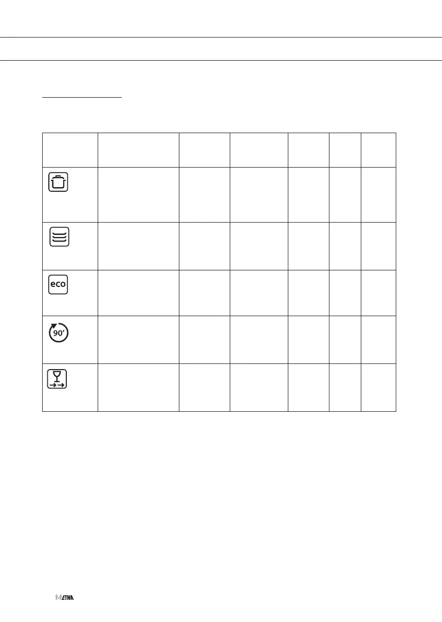 ETNA VW549M/E01 - De Vaatwasser Programmeren; Wascyclustabel