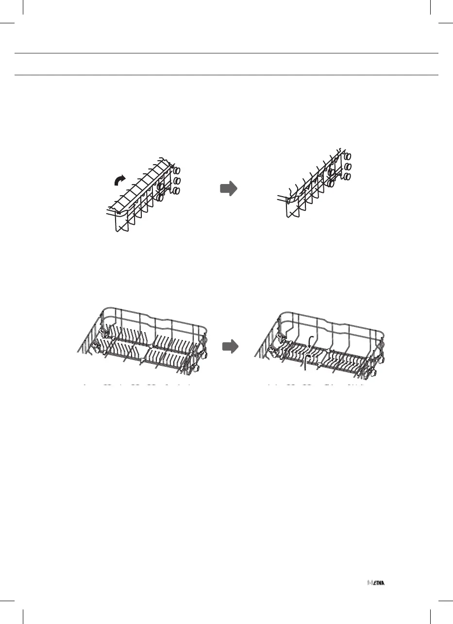 Um im Geschirrkorb Platz für größere Gegenstände zu schaffen, Tassengestell nach oben