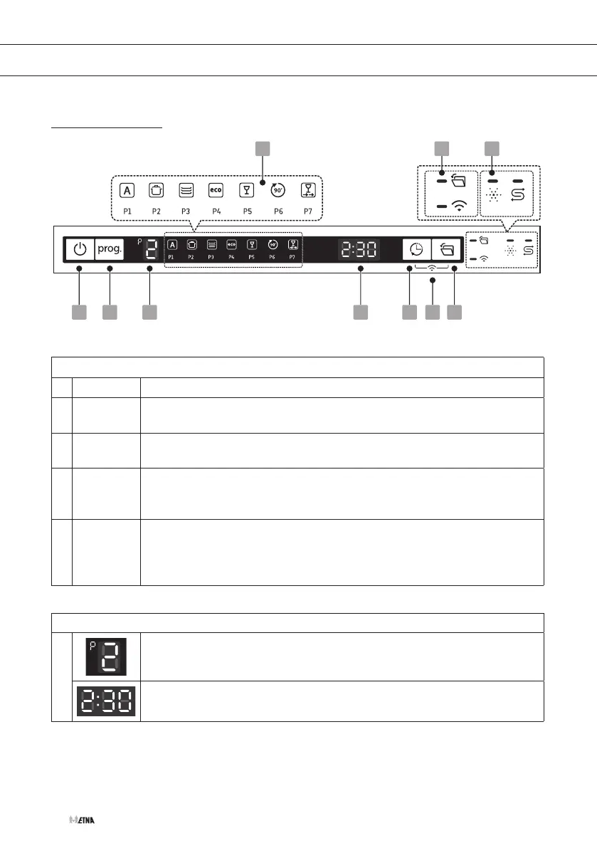1 On/Off Press this button to turn on your dishwasher, the screen lights up.