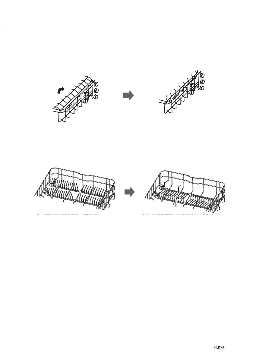To make room for taller items in the dishwasher basket, raise the cup rack upwards. You can