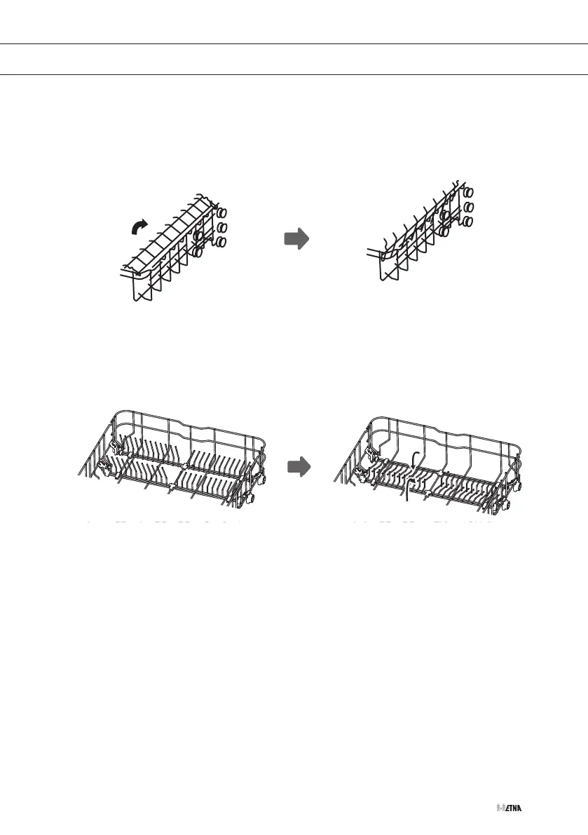 Um im Geschirrkorb Platz für größere Gegenstände zu schaffen, Tassengestell nach oben