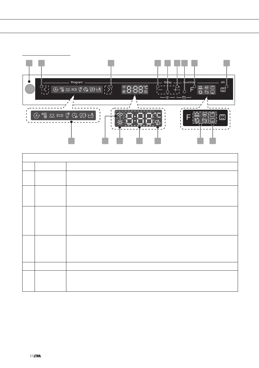 1 On/Off Press this button to turn on your dishwasher, the screen lights up.