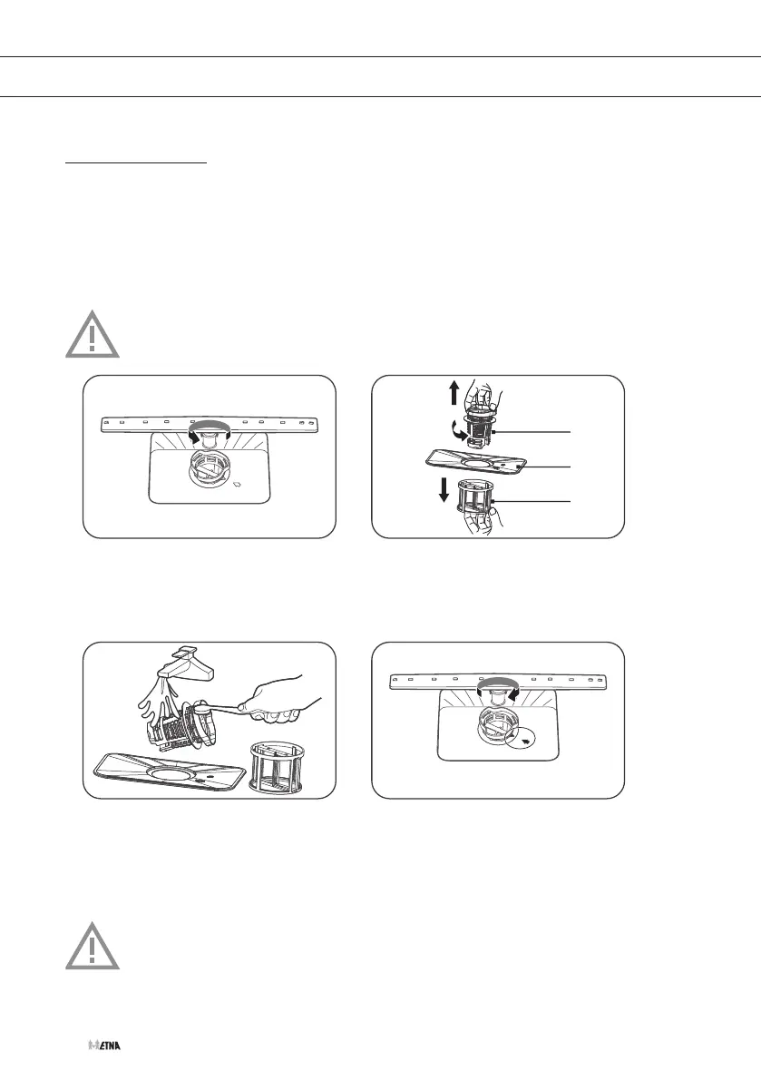 objects and clean the parts of the filtering system if necessary with water. Follow the steps below