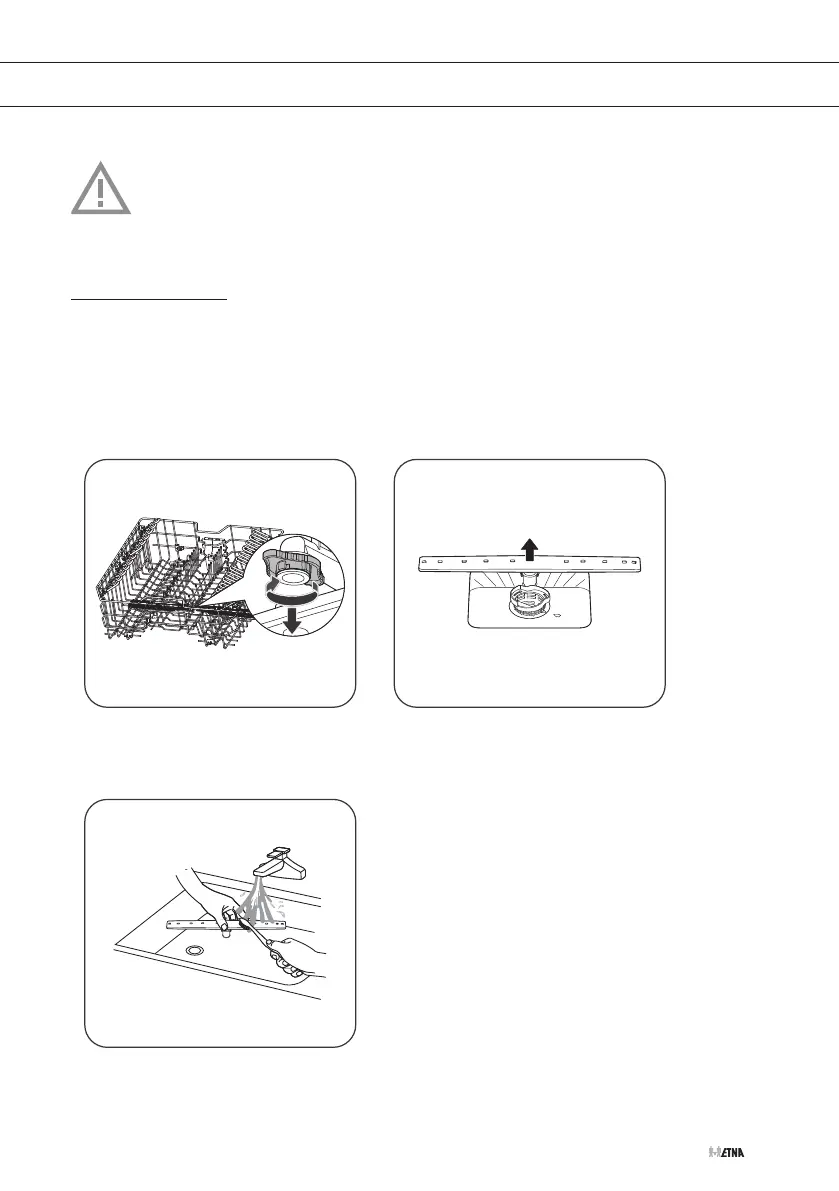 Düsen und Lager der Arme verstopfen. Um die Sprüharme zu reinigen, gehen Sie wie folgt vor: