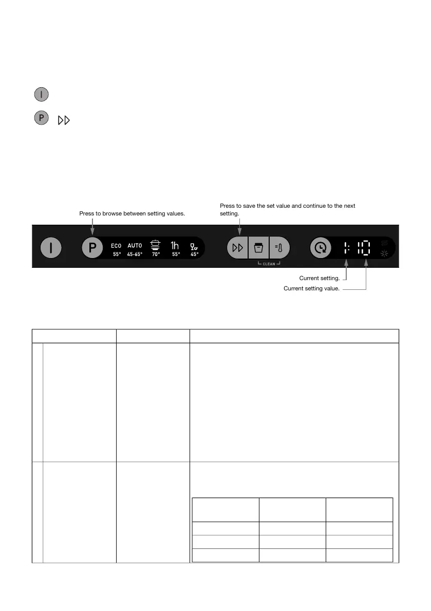 Adjusting the water softener. Select a setting depending