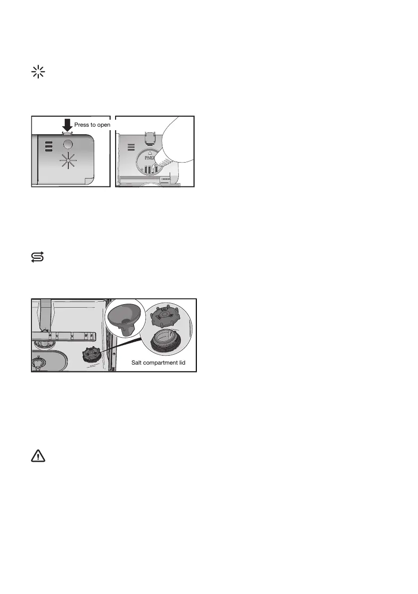 When the rinse aid needs topping up, the above symbol lights on the display.