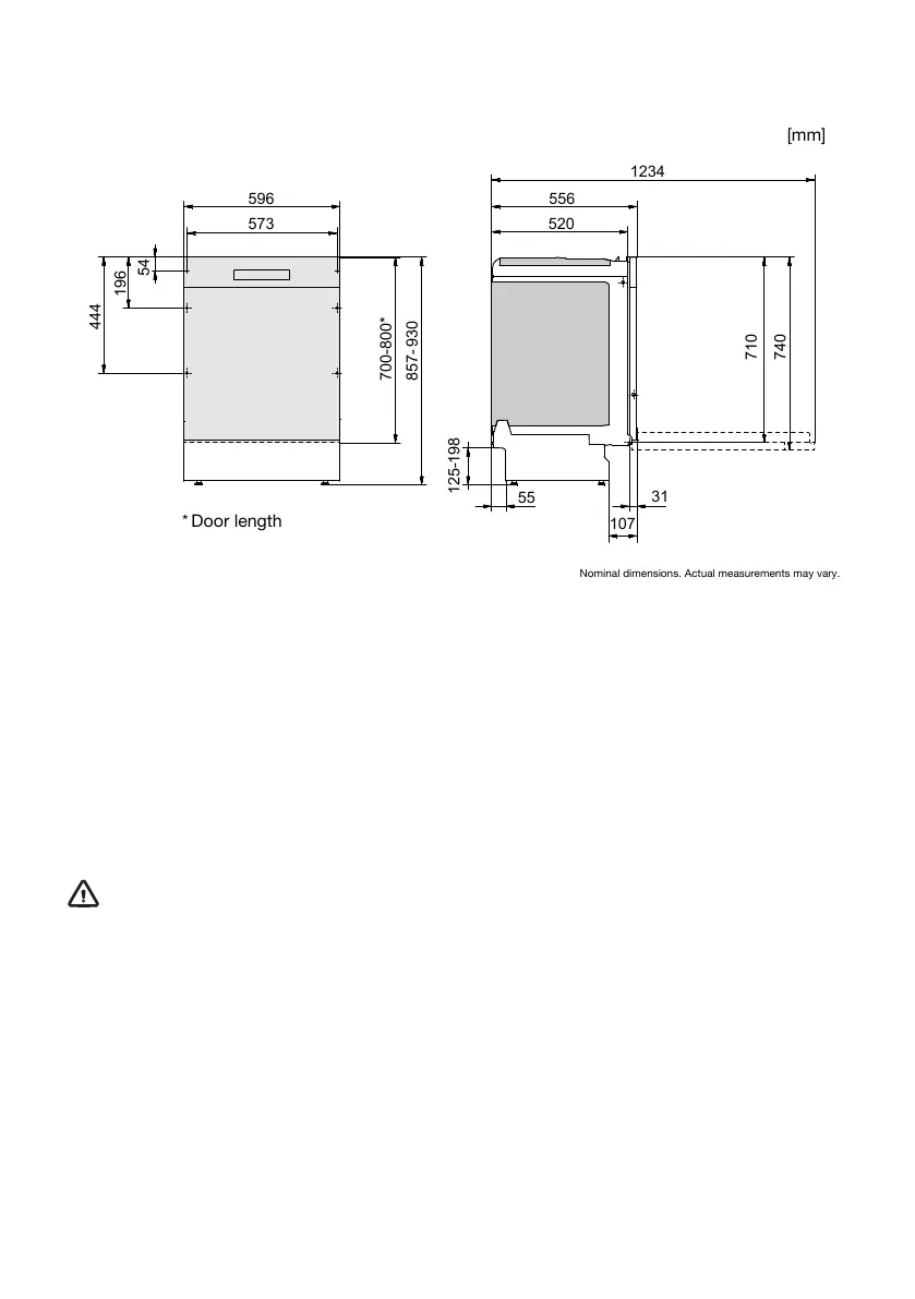 • If the dishwasher is built-in the surrounding furnishings must be resistant to any condensation