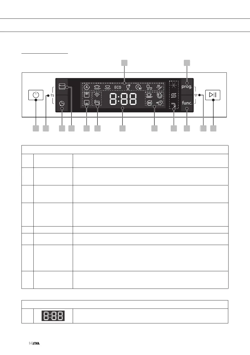 1 Ein/Aus Taste drücken, um Geschirrspüler einzuschalten. Anzeigeelemente