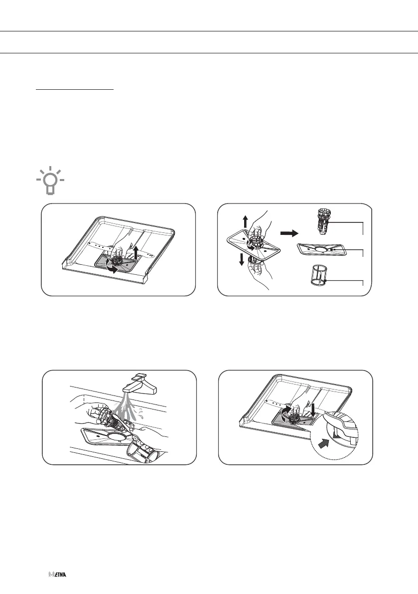 avec de l'eau. Pour nettoyer les filtres de la cuve de lavage, procédez de la manière suivante: