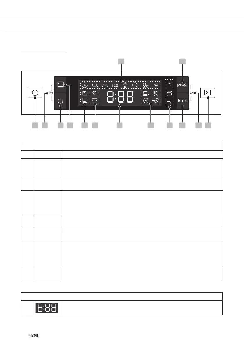 1 On/Off Press this button to turn on your dishwasher, the screen lights up.