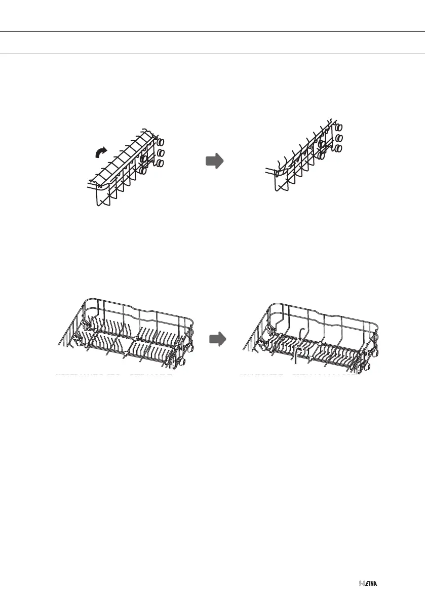 To make room for taller items in the dishwasher basket, raise the cup rack upwards. You can