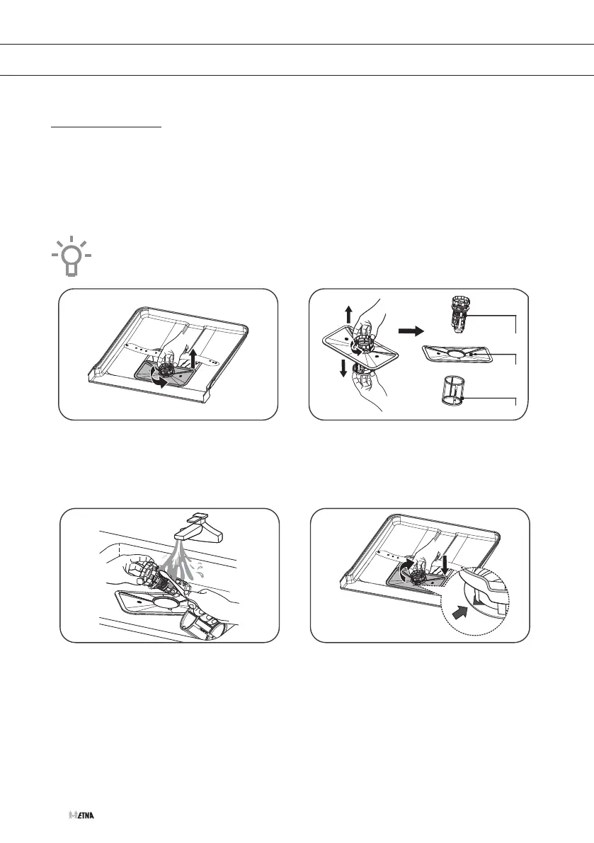 objects and clean the parts of the filtering system if necessary with water. Follow the steps below