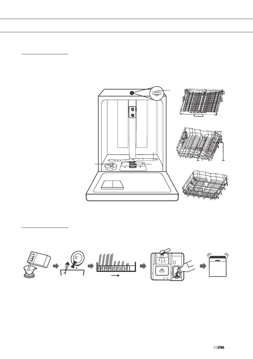 1. Einstellung für den Wasserenthärter festlegen, Salz einfüllen.