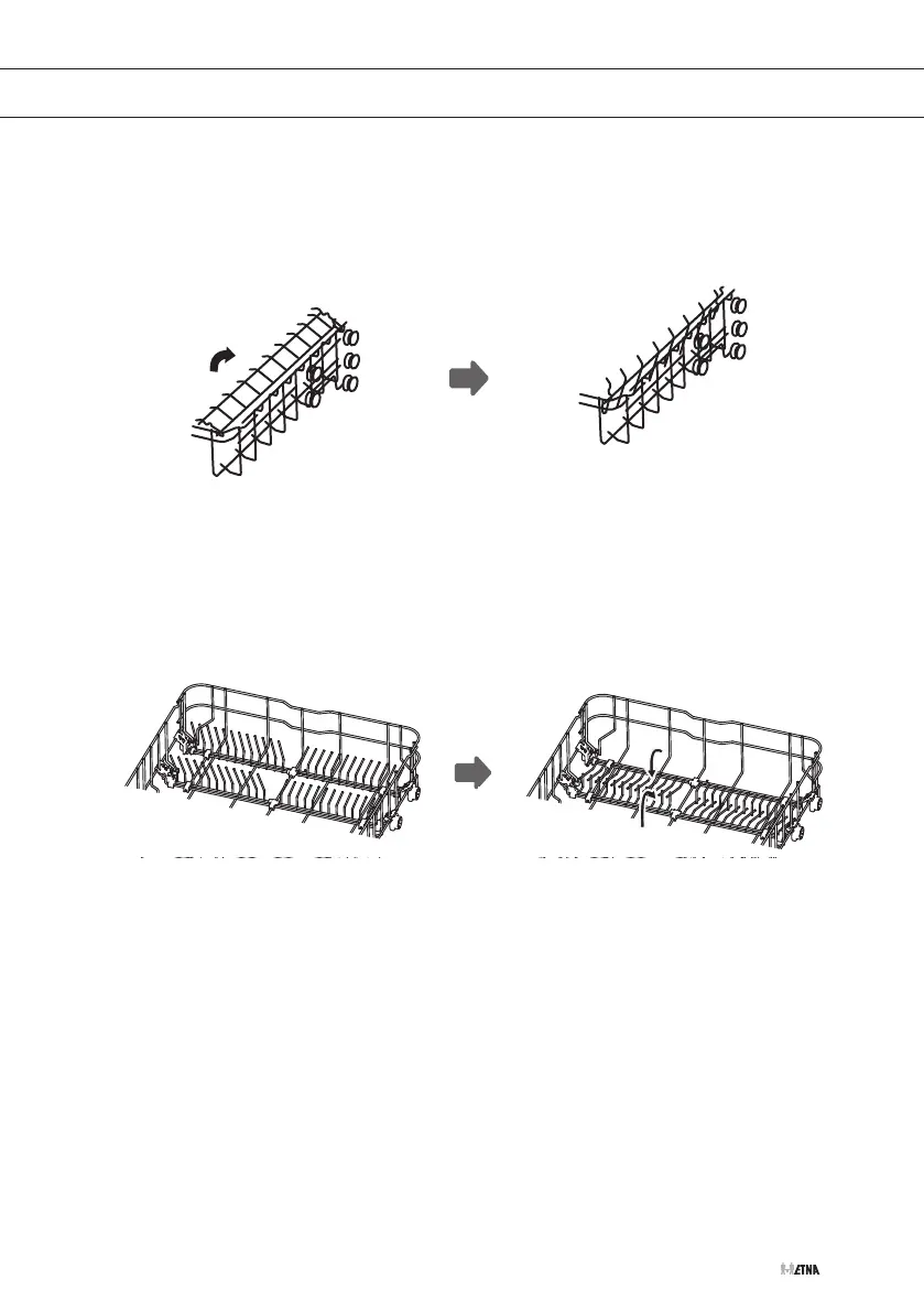 Um im Geschirrkorb Platz für größere Gegenstände zu schaffen, Tassengestell nach oben