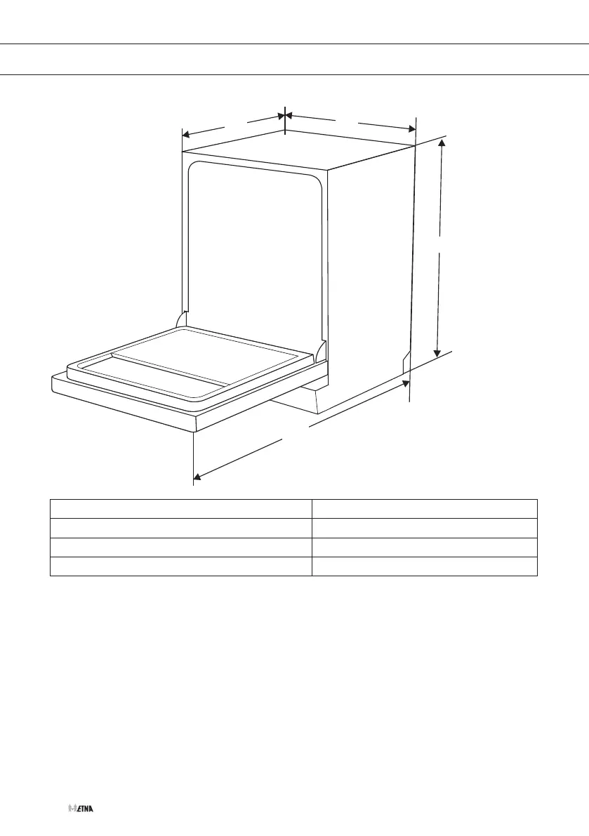 Tiefe (D2) 1175 mm (wenn Gerätetür 90° geöffnet)