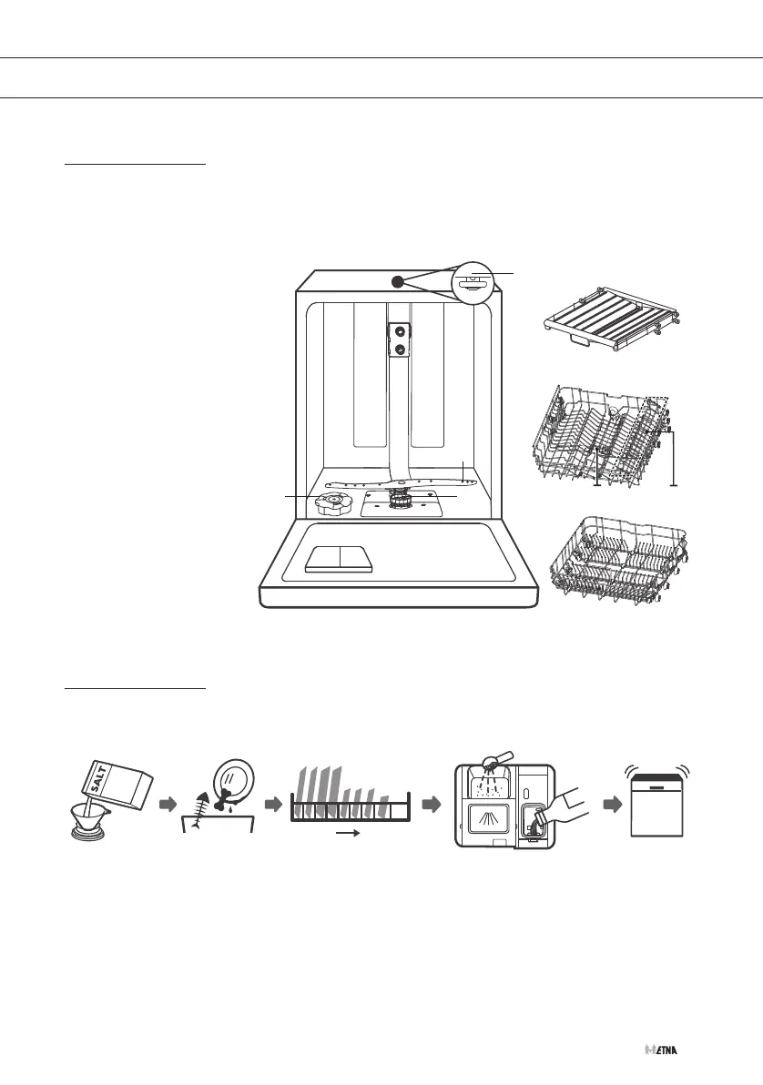 1. Einstellung für den Wasserenthärter festlegen, Salz einfüllen.