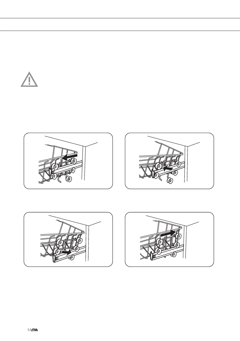 3. Réinsérez le panier supérieur sur le rail avec les roues supérieures ou inférieures.