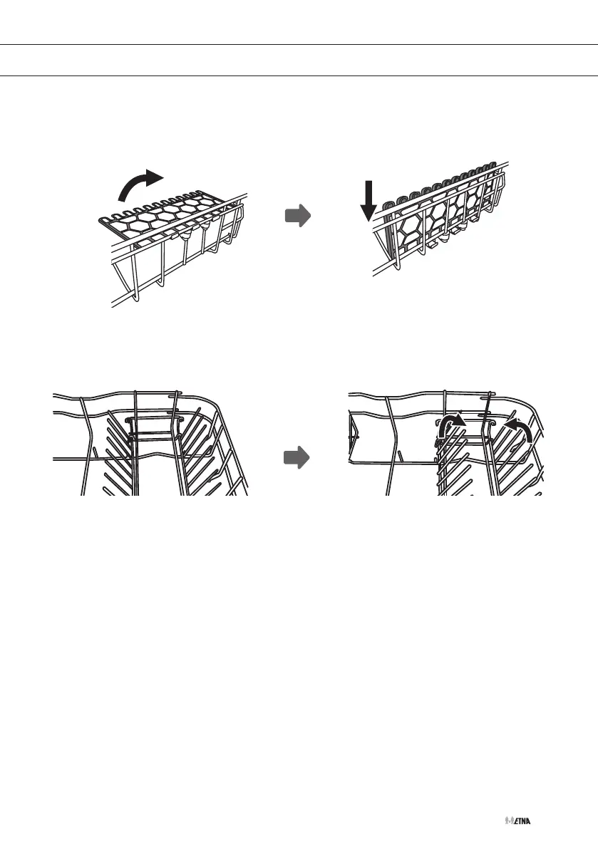To make room for taller items in the dishwasher basket, raise the cup rack upwards. You can