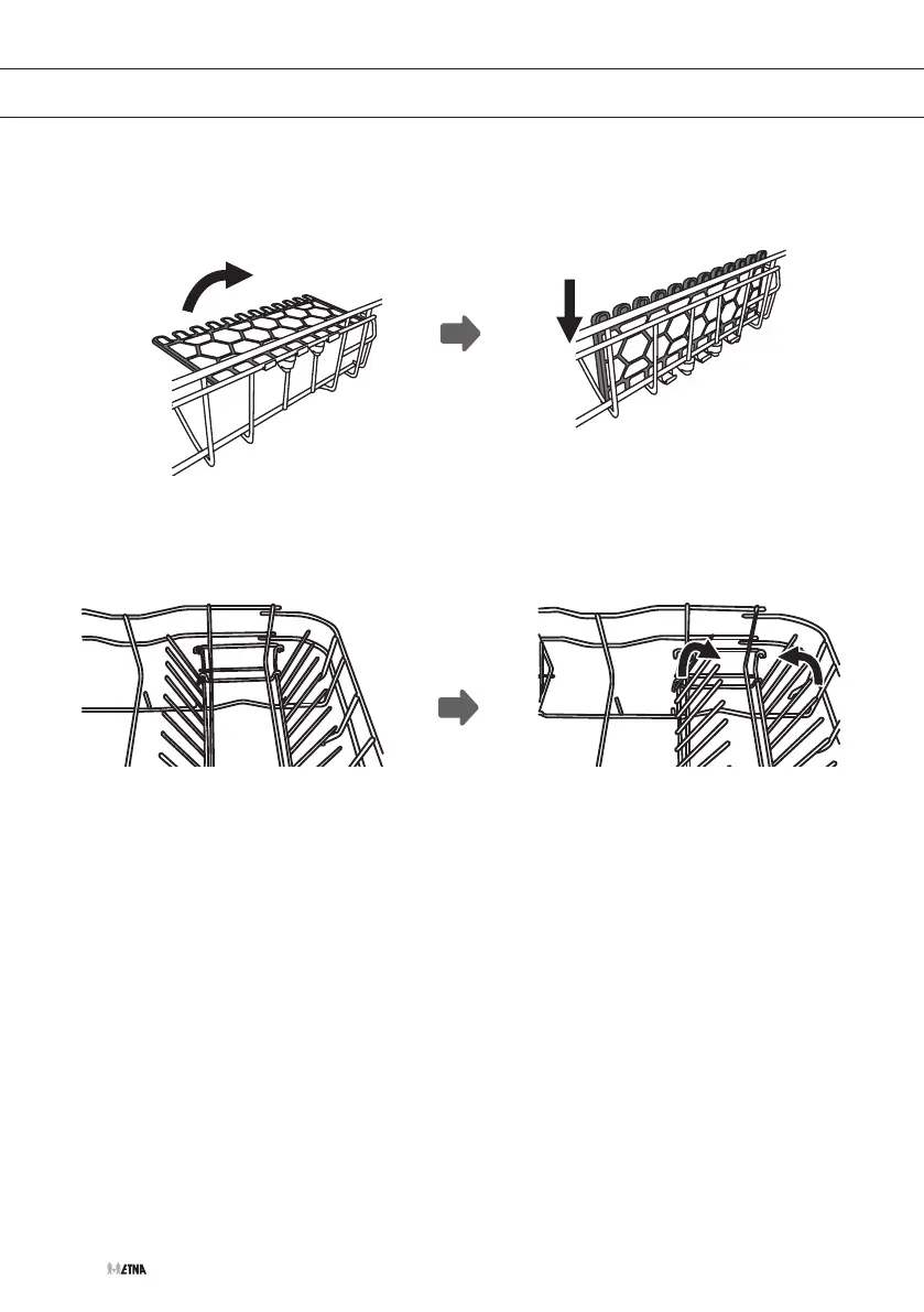 To make room for taller items in the dishwasher basket, raise the cup rack upwards. You can