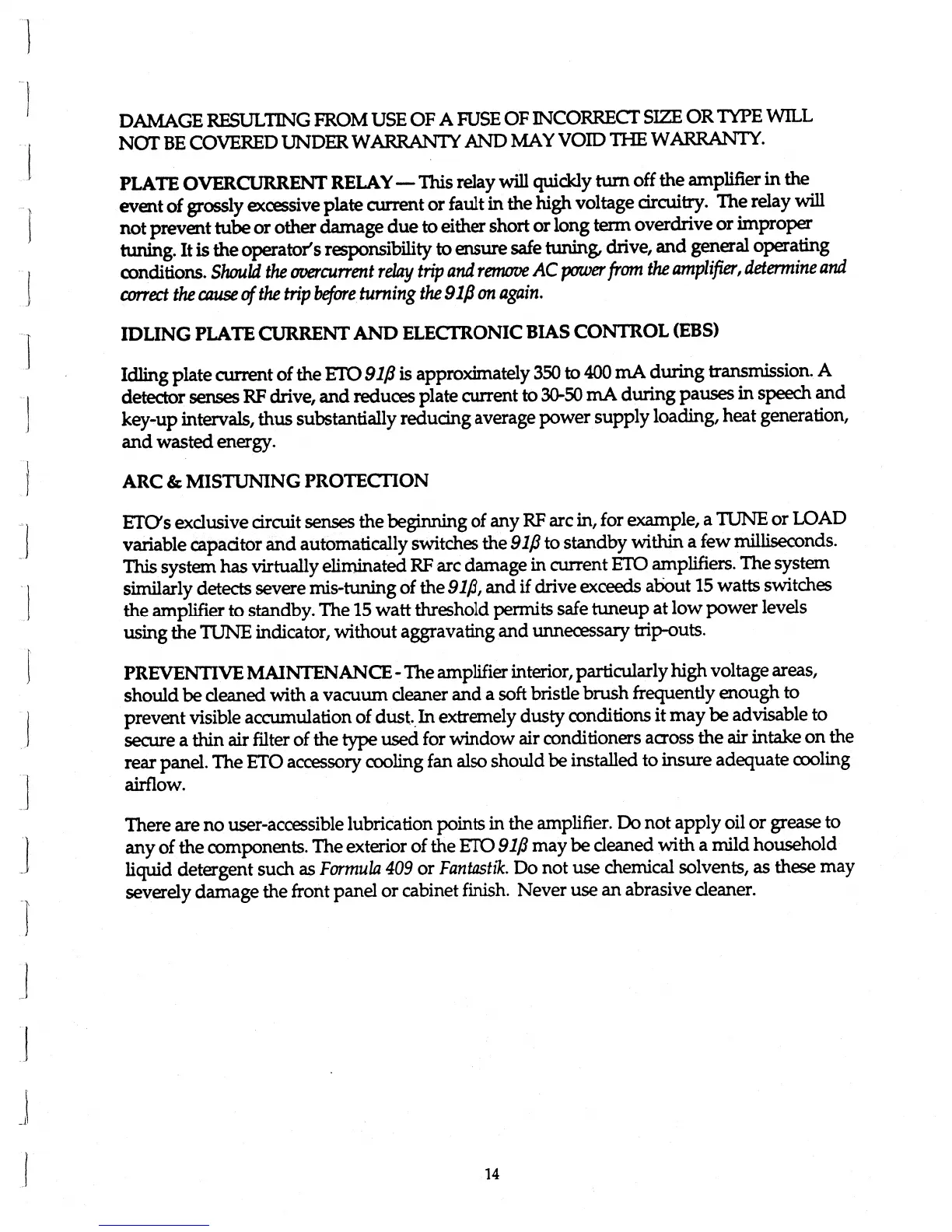 ETO 91B - Plate Overcurrent Relay Operation; Electronic Bias Control (EBS); Arc and Mistuning Protection; Preventive Maintenance Guidelines
