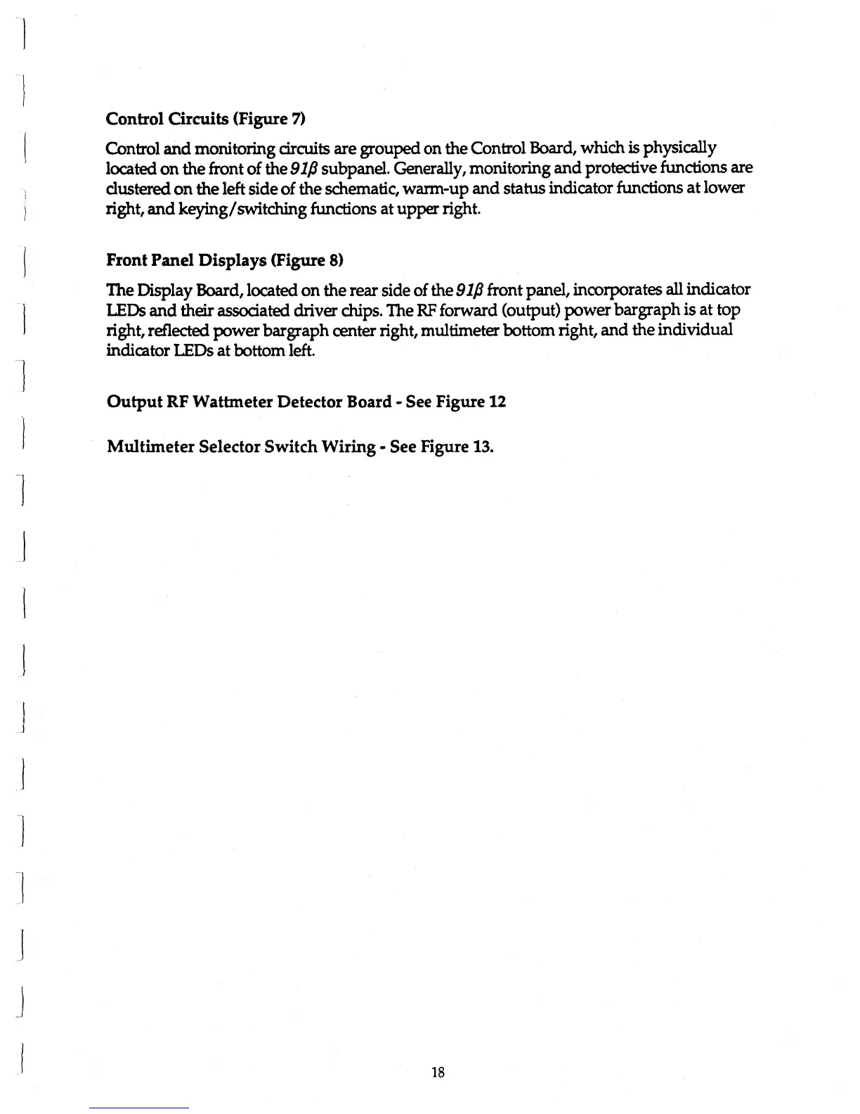 ETO 91B - Control Circuits Description; Front Panel Displays and Indicators; Output RF Wattmeter Detector Board; Multimeter Selector Switch Wiring