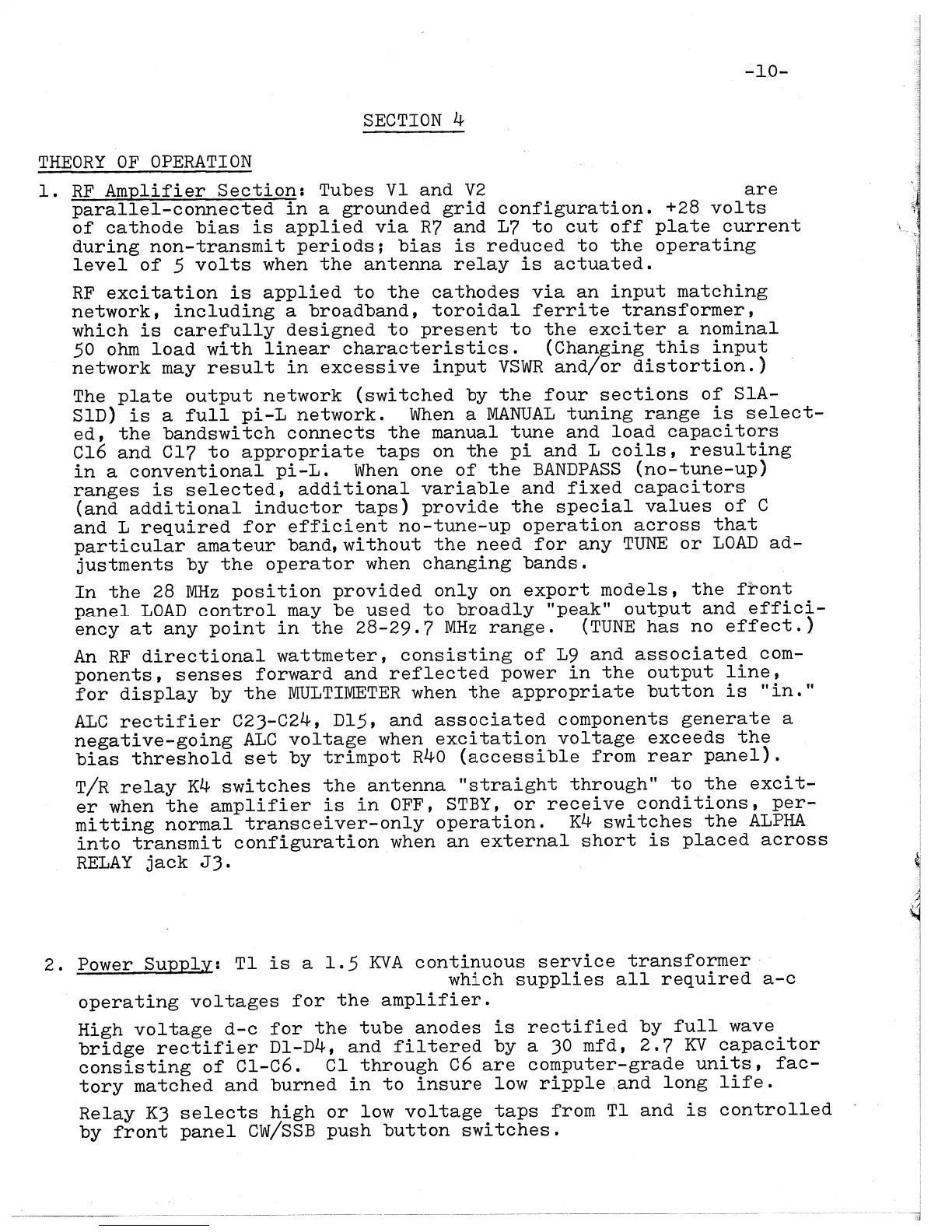 ETO ALPHA 374A - Theory of Operation; RF Amplifier Section; Power Supply