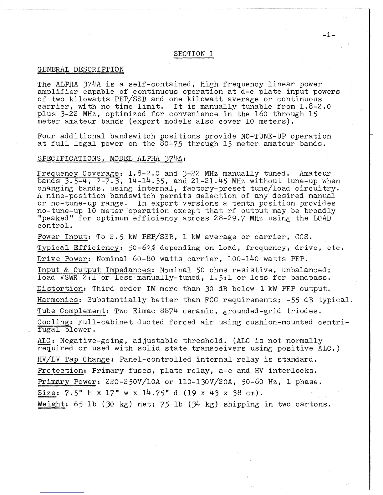 ETO ALPHA 374A - General Description; Specifications