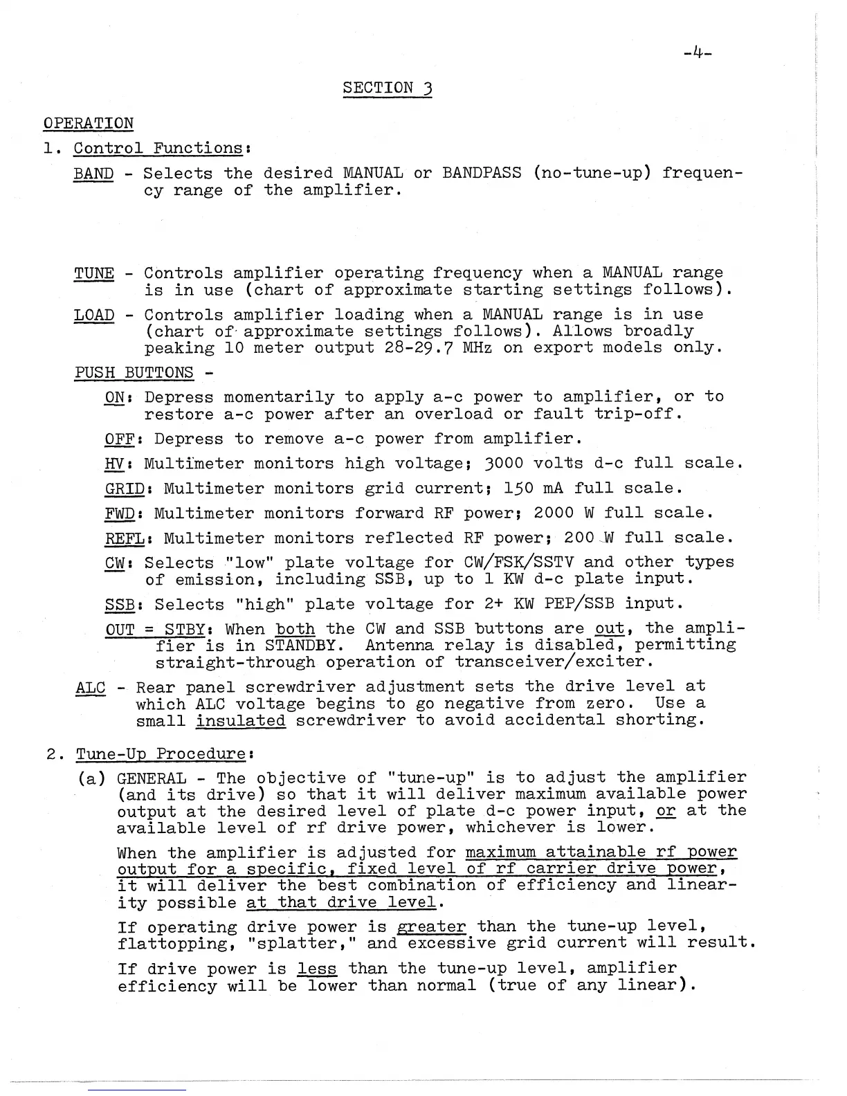 ETO ALPHA 374A - Operation; Control Functions; Tune-Up Procedure