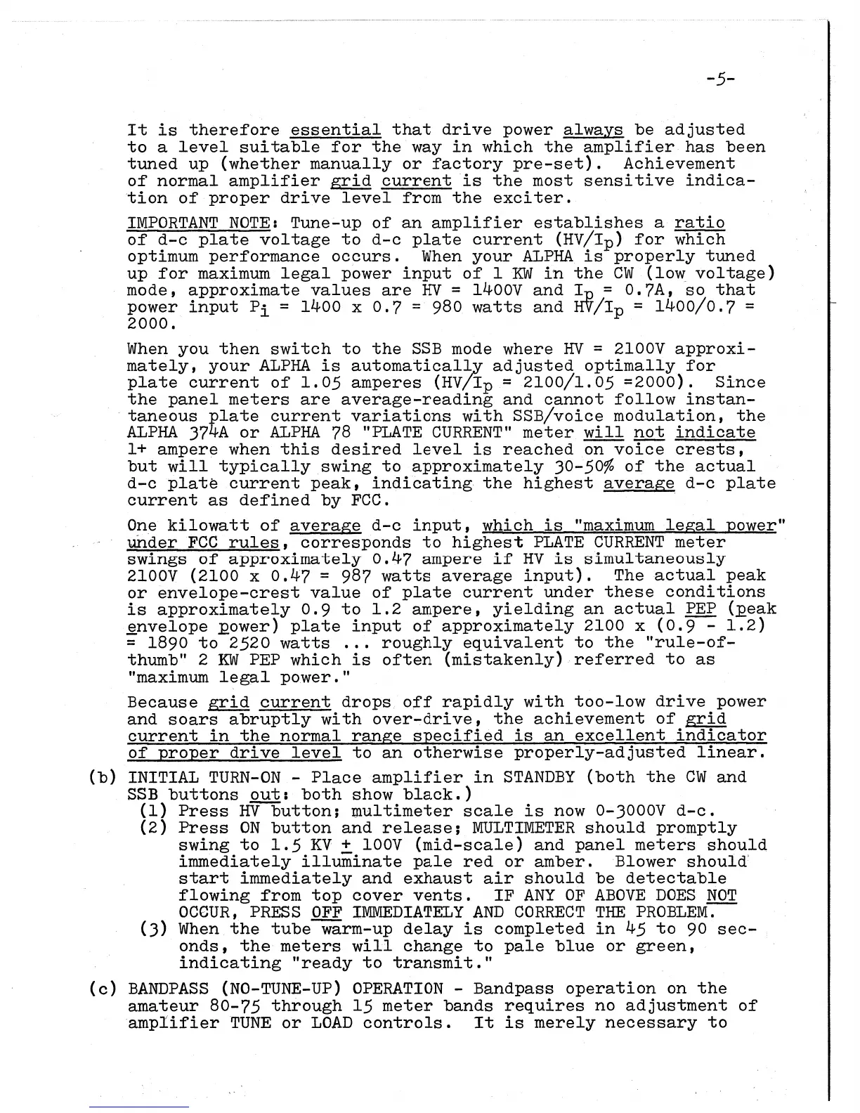 ETO ALPHA 374A - Initial Turn-On; Bandpass (No-Tune-Up) Operation