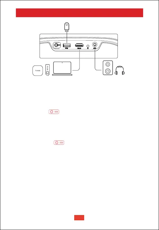① Plug in the 3.5mm AUX cable connector to projector AUX port.