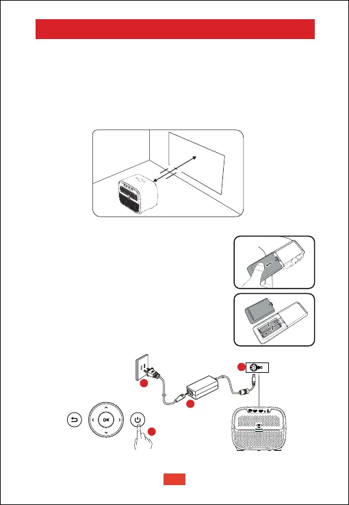 ①Coloque el proyector justo hacia la superficie de proyección para obtener