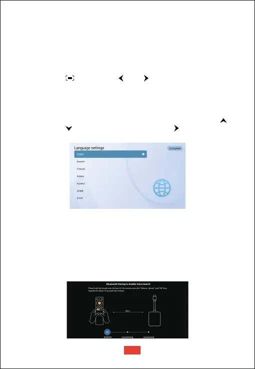 またはリモコンを使用して言語を選択し、次に右ボタンを押して「完了」を