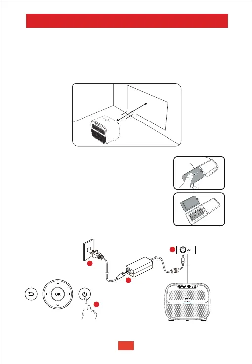 ① Place the projector right towards the projection surface to get a