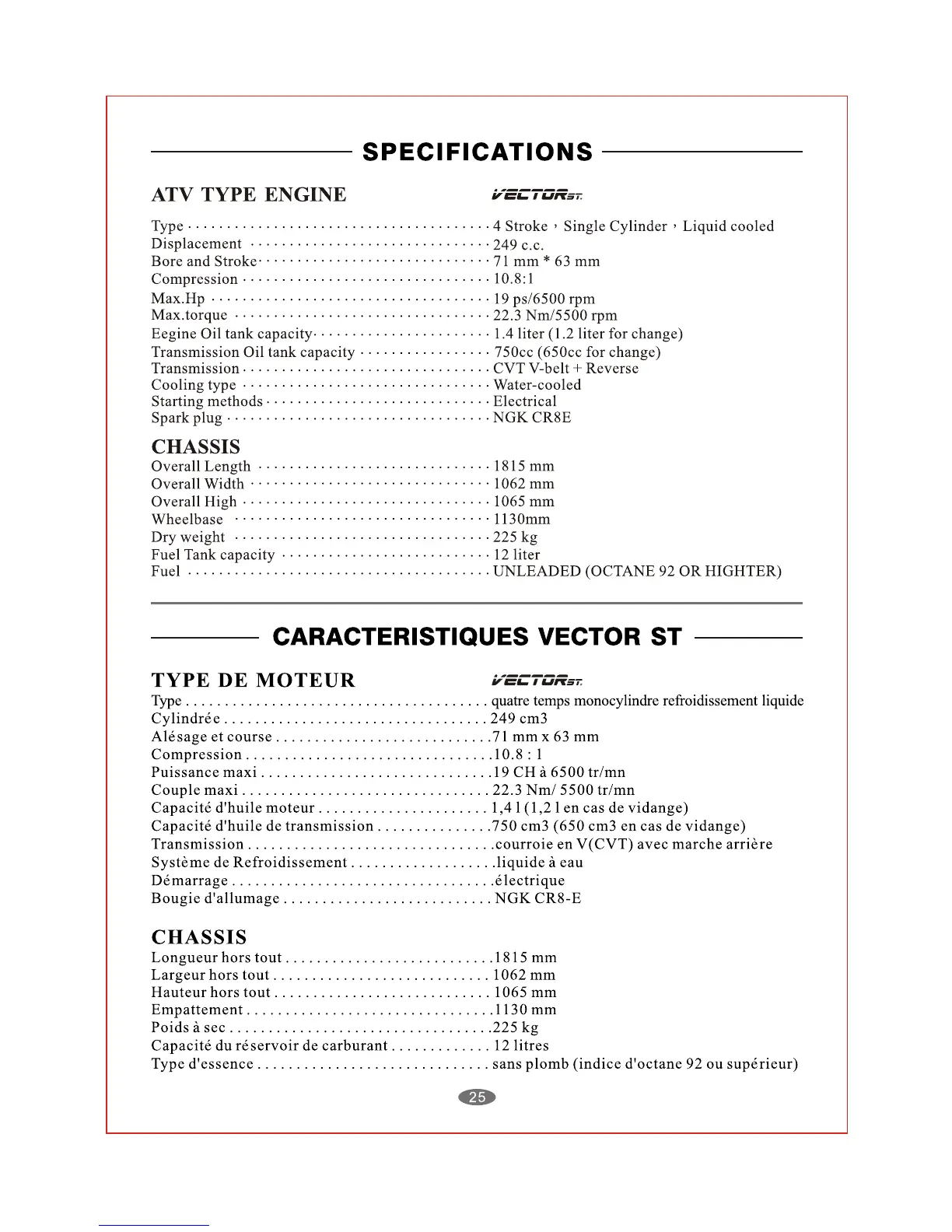 Eton ATV8E - Engine Specifications; Engine Type & Displacement; Engine Performance Data