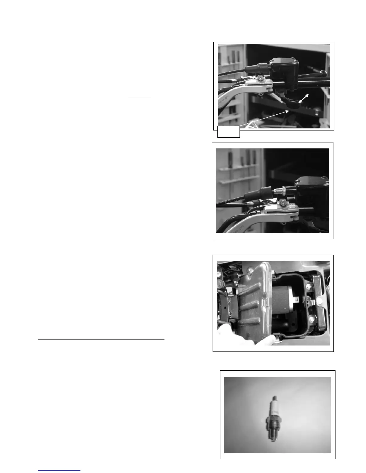 Disconnect the spark plug cap and unscrew the spark plug.