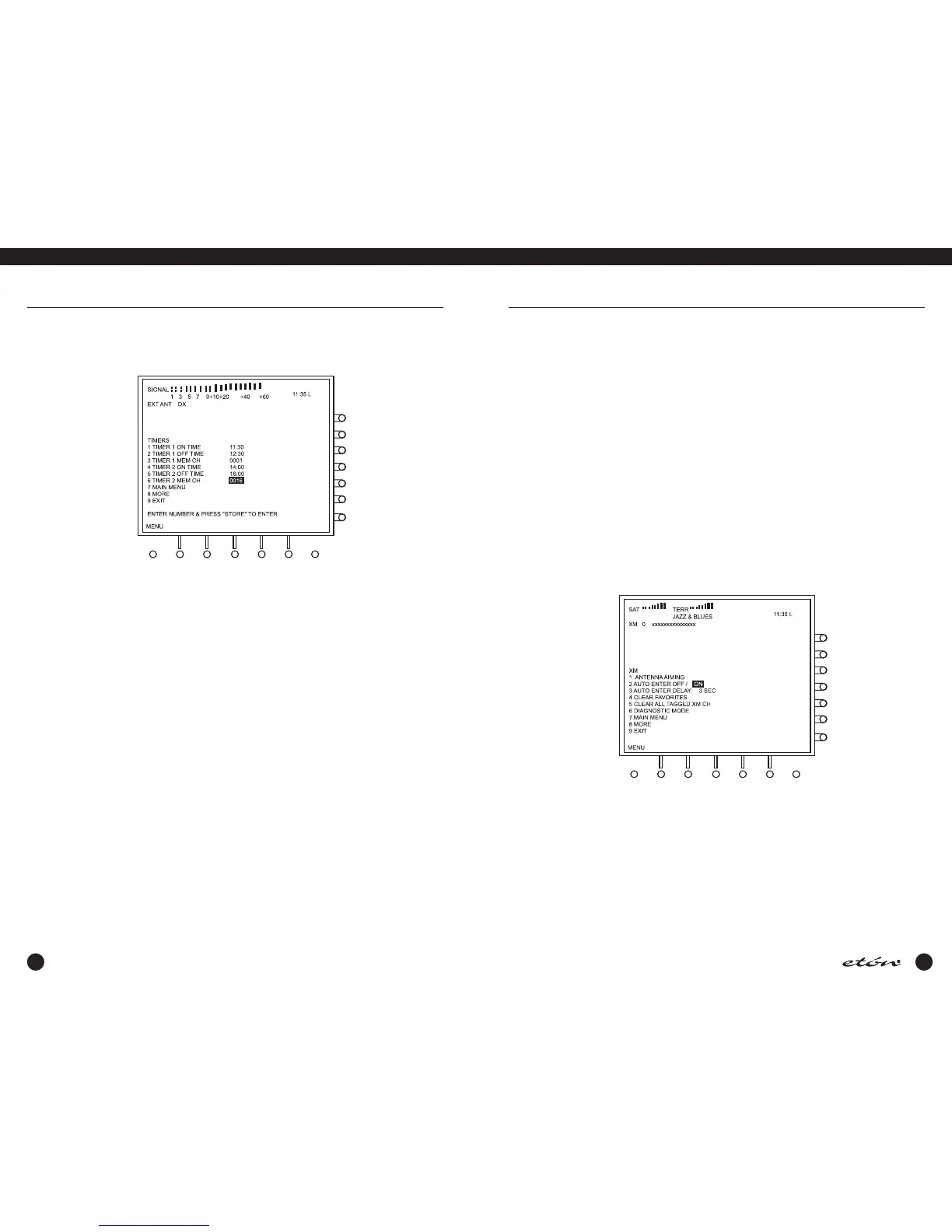This menu is used to set the ON time, OFF time, and associated MEMORY, COUNTRY, or XM channel (if equipped) for