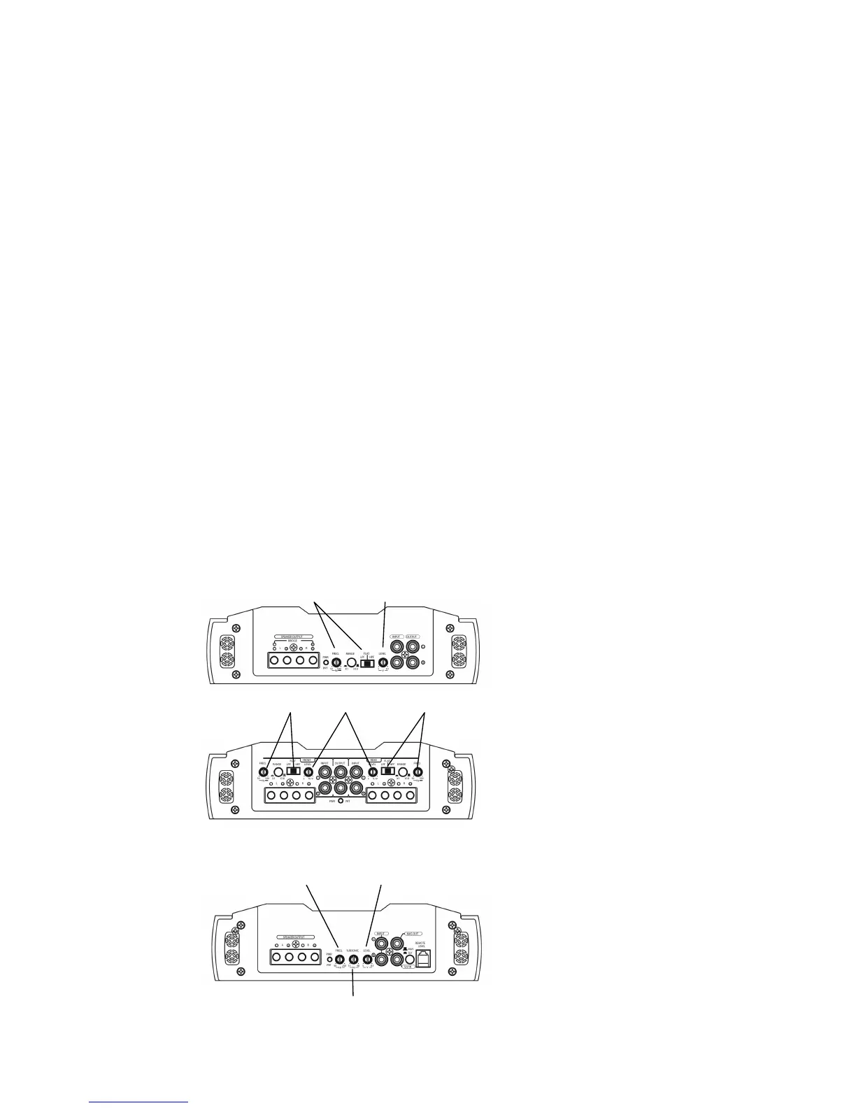 To adjust the level setting, turn the amplifier levels all the way down. Turn the source unit volume up