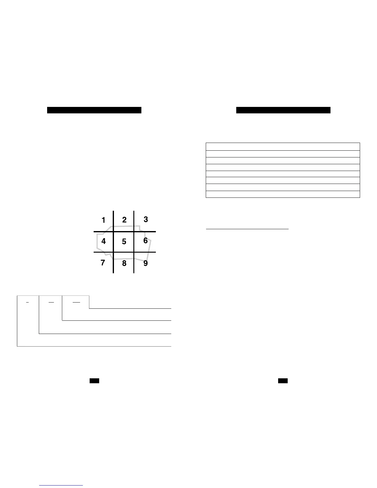 smaller sub-sections.The numbers of one (1) to nine (9) in the far left column